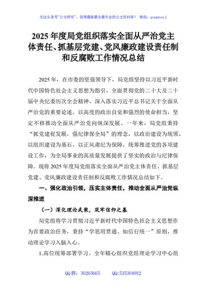 / 2025年度局党组织落实全面从严治党主体责任、抓基层党建、党风廉政建设责任制和反腐败工作情况总结