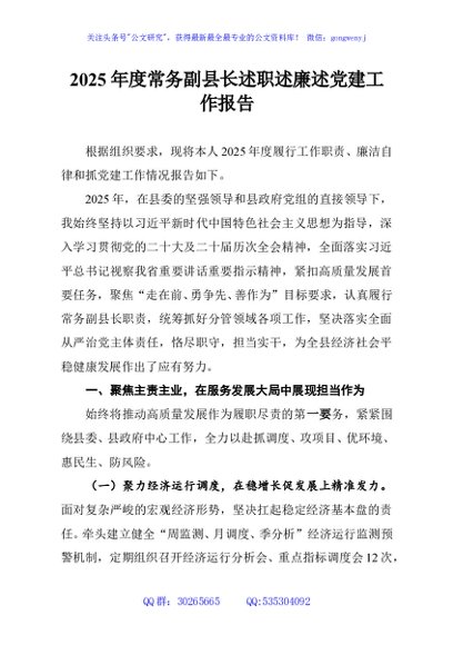 / 2025年度常务副县长述职述廉述党建工作报告