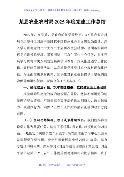 / 某县农业农村局2025年度党建工作总结