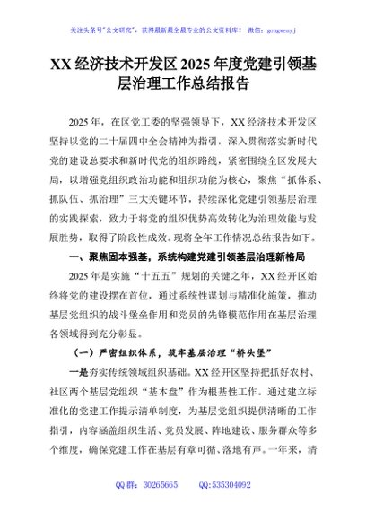 / XX经济技术开发区2025年度党建引领基层治理工作总结报告