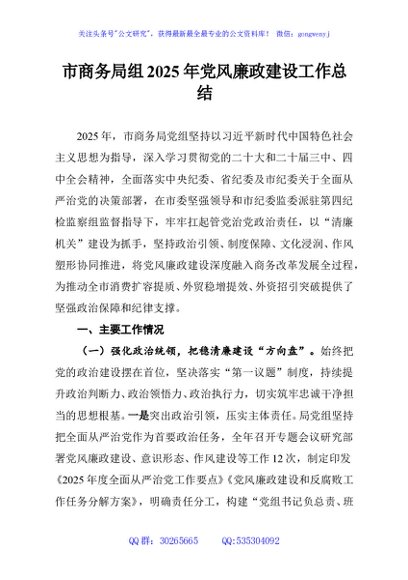 / 市商务局组2025年党风廉政建设工作总结