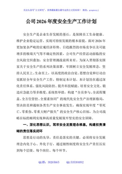 / 公司2026年度安全生产工作计划