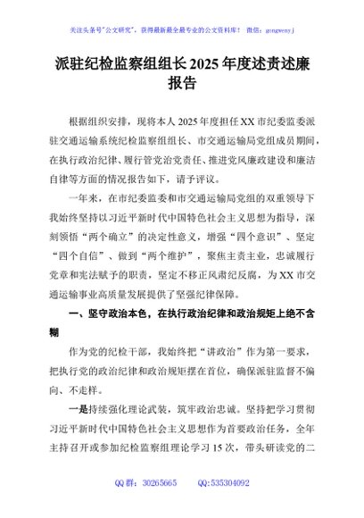 / 派驻纪检监察组组长2025年度述责述廉报告