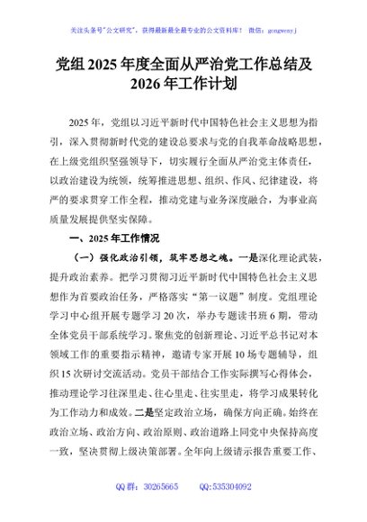 / 党组2025年度全面从严治党工作总结及2026年工作计划