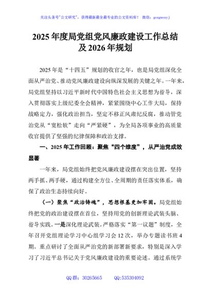/ 2025年度局党组党风廉政建设工作总结及2026年规划