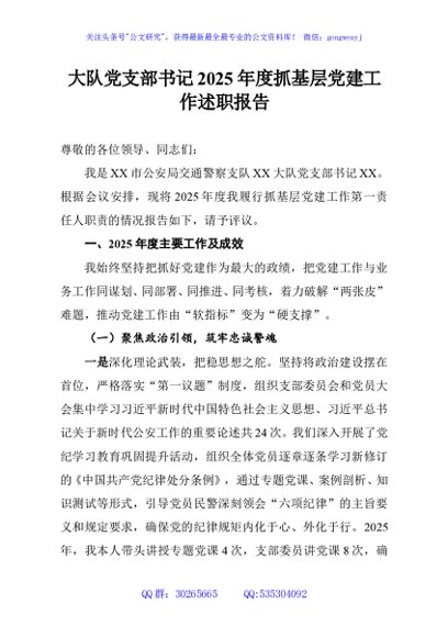/ 大队党支部书记2025年度抓基层党建工作述职报告