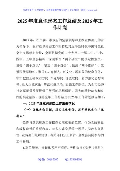 / 2025年度意识形态工作总结及2026年工作计划