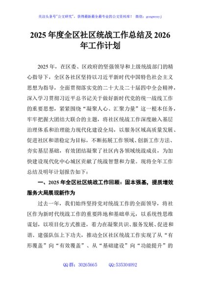 / 2025年度全区社区统战工作总结及2026年工作计划