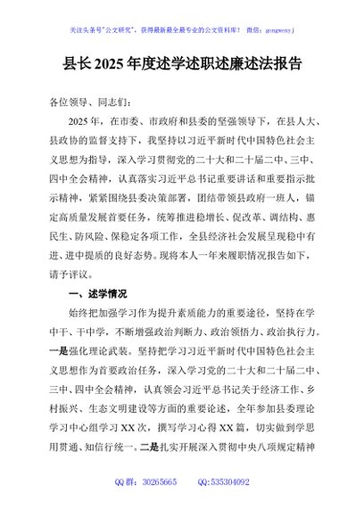 / 县长2025年度述学述职述廉述法报告
