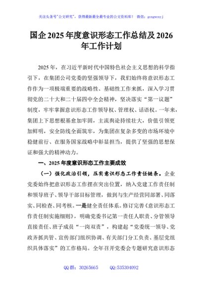 / 国企2025年度意识形态工作总结及2026年工作计划