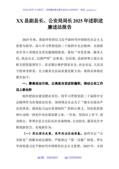 / XX县副县长、公安局局长2025年述职述廉述法报告