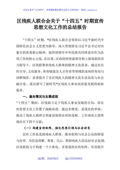 / 区残疾人联合会关于“十四五”时期宣传思想文化工作的总结报告