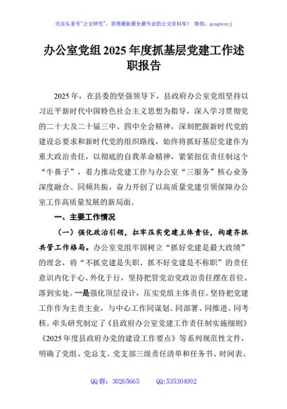 / 办公室党组2025年度抓基层党建工作述职报告