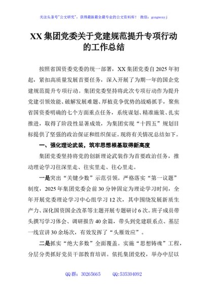 / XX集团党委关于党建规范提升专项行动的工作总结