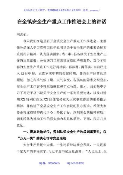 / 在全镇安全生产重点工作推进会上的讲话
