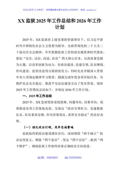 / XX监狱2025年工作总结和2026年工作计划