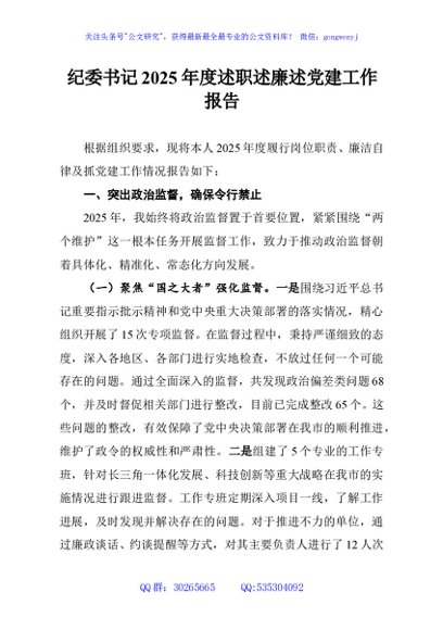 / 纪委书记2025年度述职述廉述党建工作报告