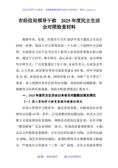 / 市经信局领导干部2025年度民主生活会对照检查材料