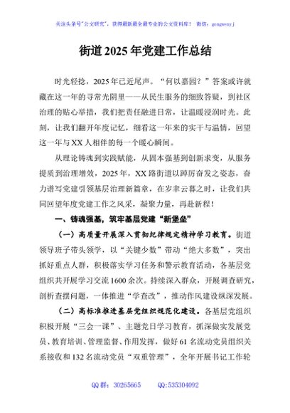 / 街道2025年党建工作总结