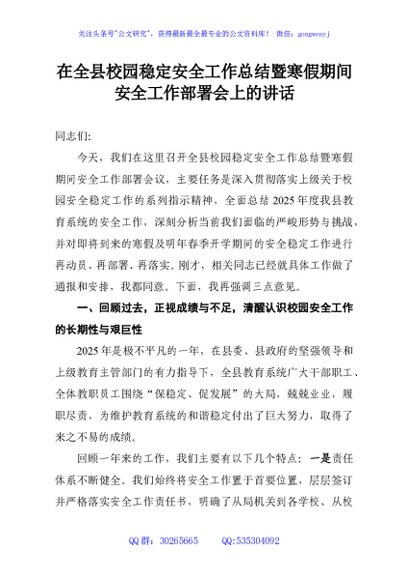 / 在全县校园稳定安全工作总结暨寒假期间安全工作部署会上的讲话