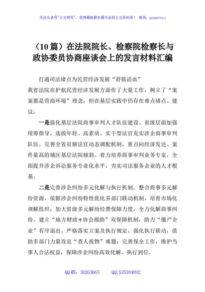 / (10篇)在法院院长、检察院检察长与政协委员协商座谈会上的发言材料汇编