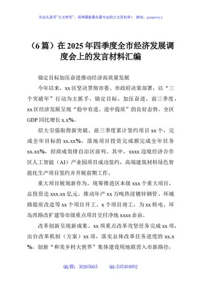 / (6篇)在2025年四季度全市经济发展调度会上的发言材料汇编
