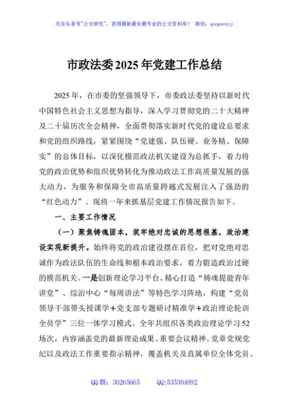 / 市政法委2025年党建工作总结