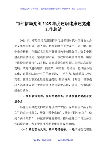 / 市经信局党组2025年度述职述廉述党建工作总结