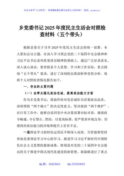 / 乡党委书记2025年度民主生活会对照检查材料(五个带头)