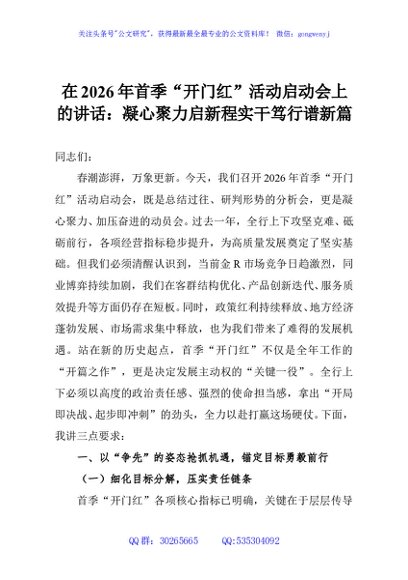 / 在2026年首季“开门红”活动启动会上的讲话:凝心聚力启新程实干笃行谱新篇
