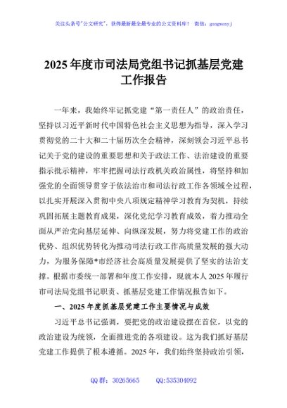 / 2025年度市司法局党组书记抓基层党建工作报告