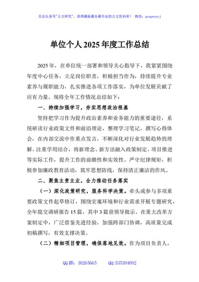 / 单位个人2025年度工作总结