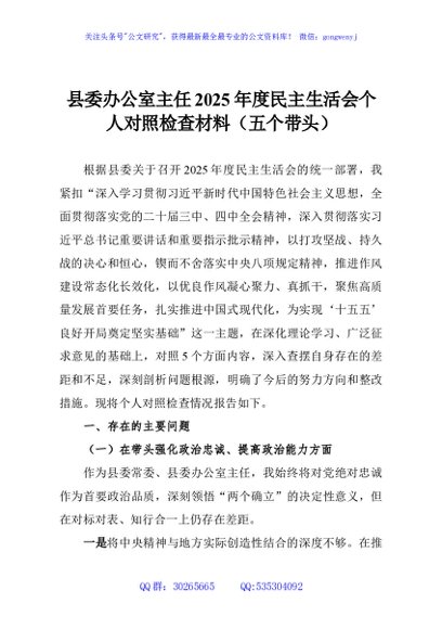/ 县委办公室主任2025年度民主生活会个人对照检查材料(五个带头)