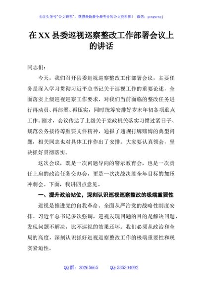 / 在XX县委巡视巡察整改工作部署会议上的讲话