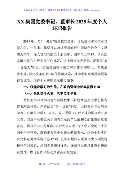 XX集团党委书记、董事长2025年度个人述职报告