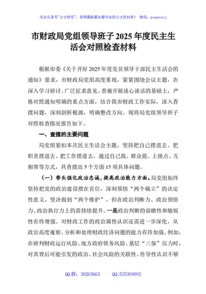 / 市财政局党组领导班子2025年度民主生活会对照检查材料