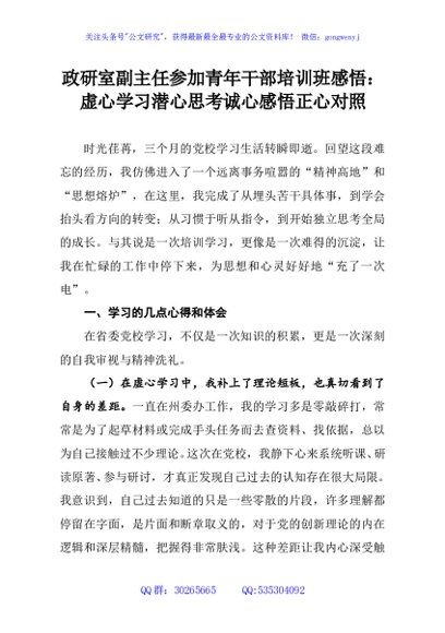 / 政研室副主任参加青年干部培训班感悟:虚心学习潜心思考诚心感悟正心对照