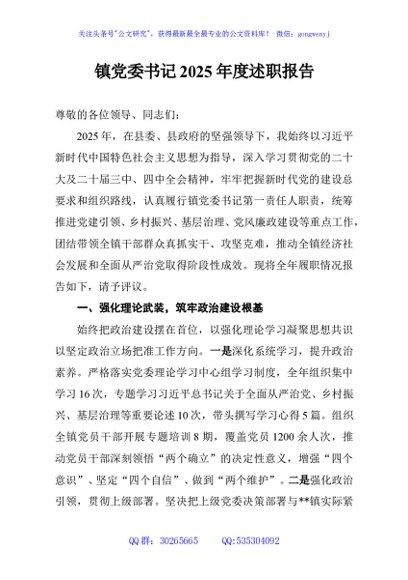 / 镇党委书记2025年度述职报告