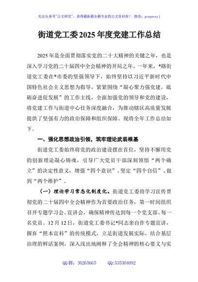 / 街道党工委2025年度党建工作总结
