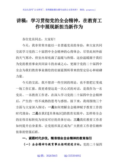 / 讲稿:学习贯彻党的全会精神,在教育工作中展现新担当新作为