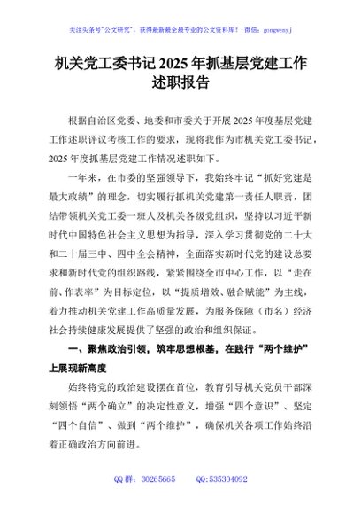 / 机关党工委书记2025年抓基层党建工作述职报告