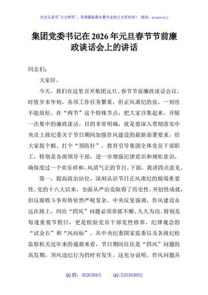 / 集团党委书记在2026年元旦春节节前廉政谈话会上的讲话