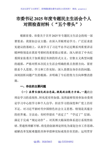 / 市委书记2025年度专题民主生活会个人对照检查材料(“五个带头”)