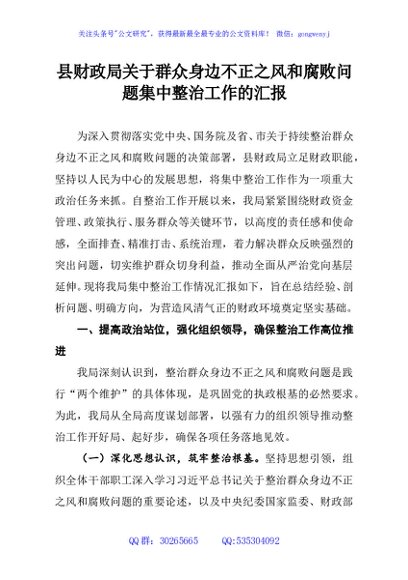 / 县财政局关于群众身边不正之风和腐败问题集中整治工作的汇报