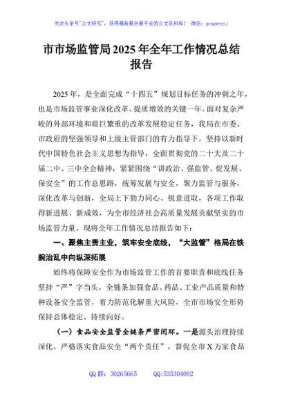 / 市市场监管局2025年全年工作情况总结报告