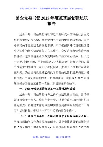 / 国企党委书记2025年度抓基层党建述职报告