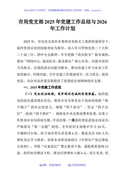 / 市局党支部2025年党建工作总结与2026年工作计划