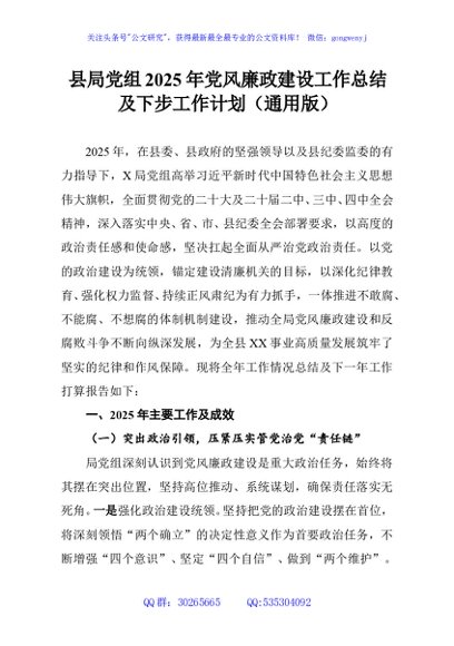/ 县局党组2025年党风廉政建设工作总结及下步工作计划(通用版)
