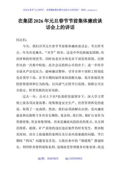 / 在集团2026年元旦春节节前集体廉政谈话会上的讲话