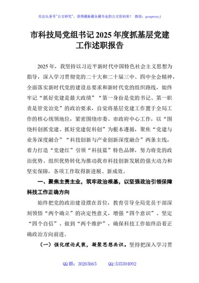 / 市科技局党组书记2025年度抓基层党建工作述职报告